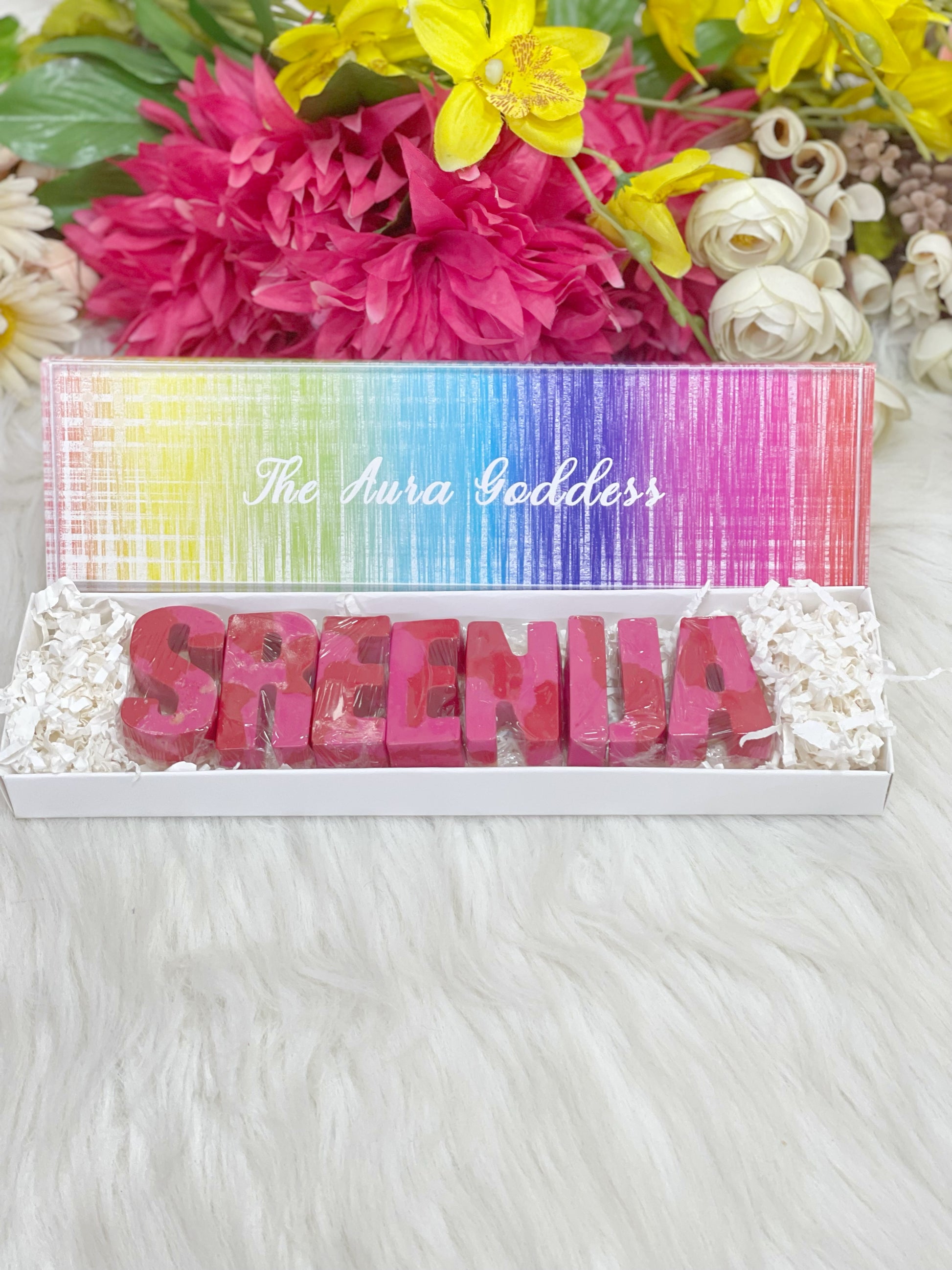 These name crayons are customised in pink/red theme .