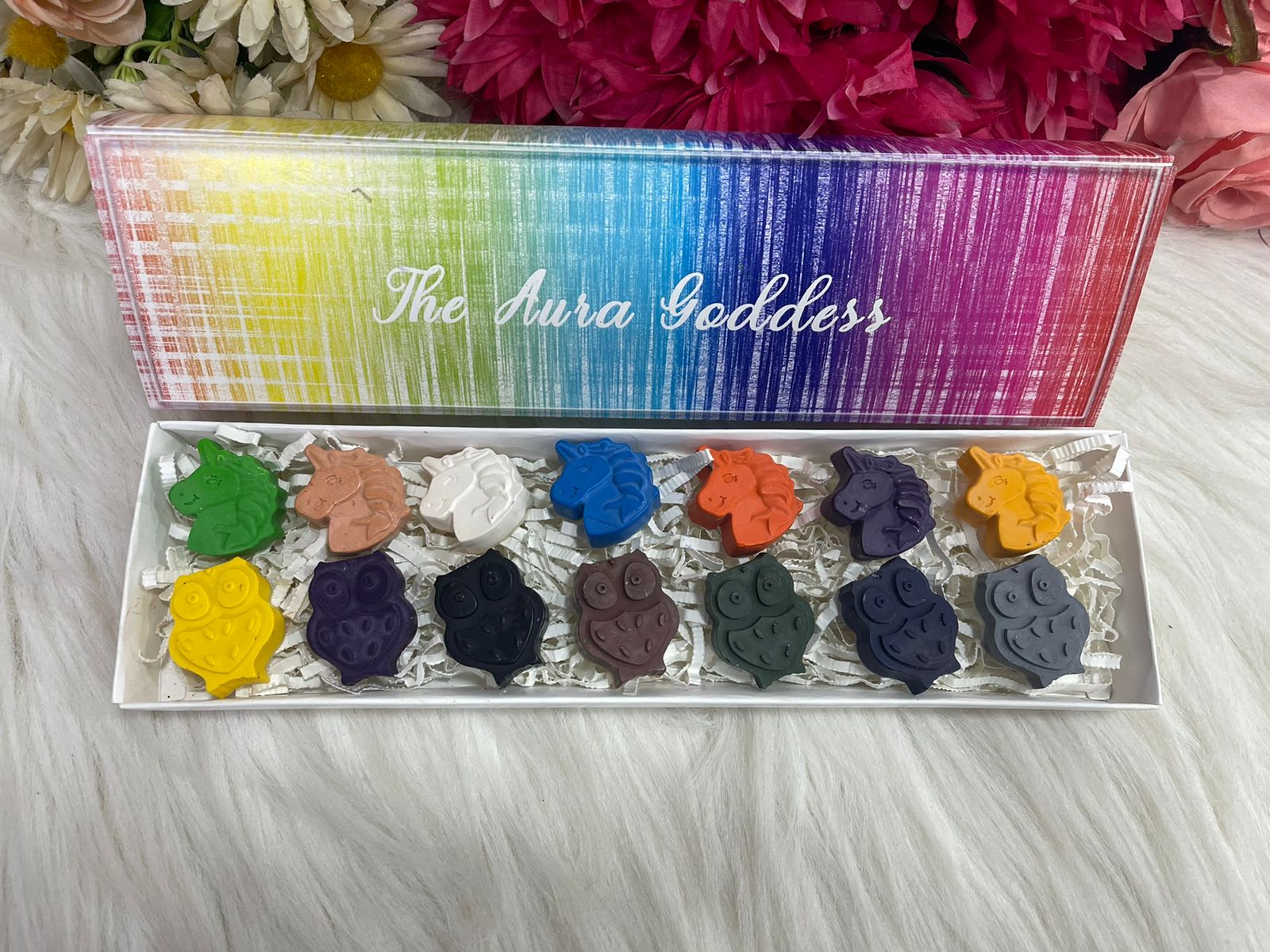 Set of 14 Unicorn +Owls crayons set
